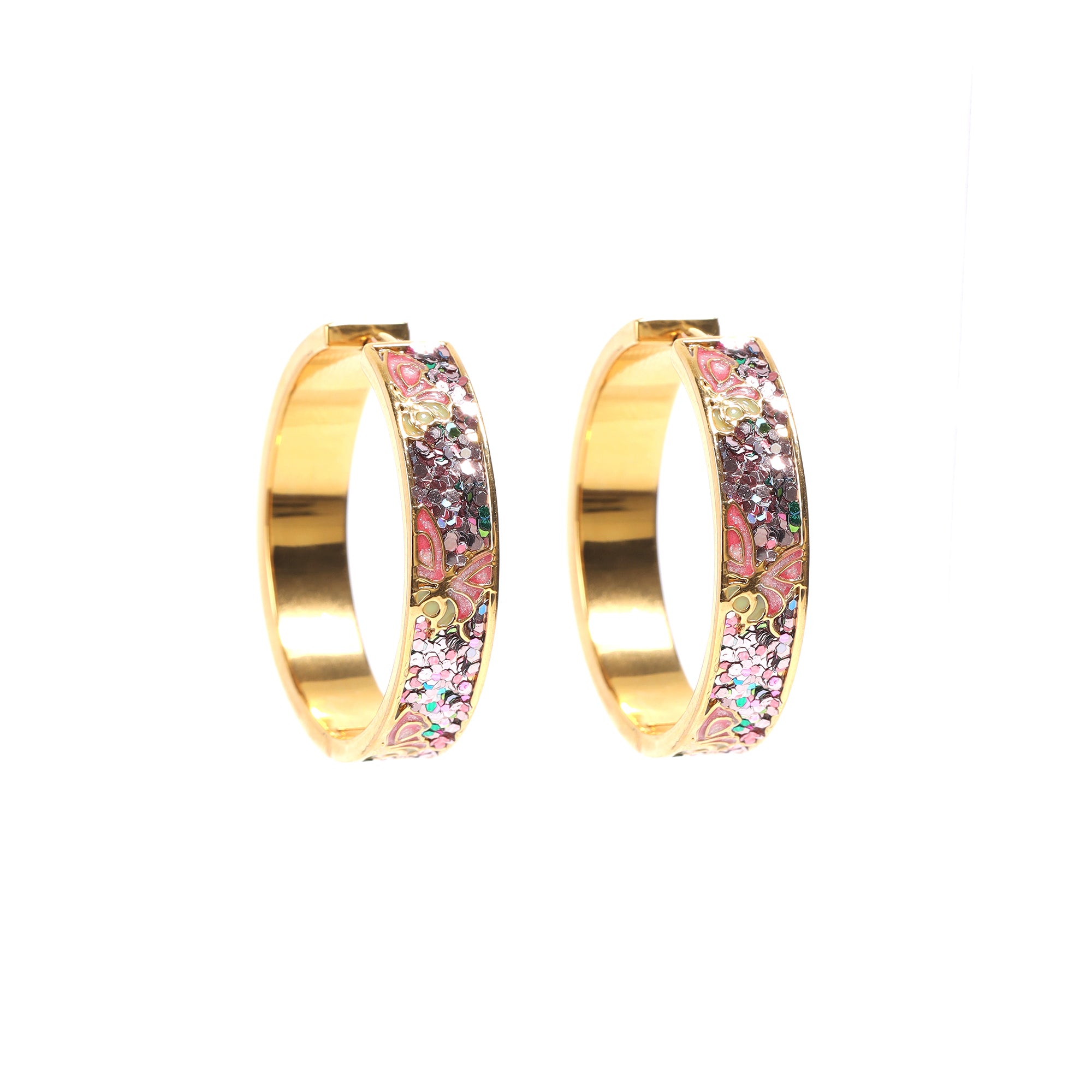 Introducing our exquisite jewelry set inspired by the beauty of nature and featuring stunning butterfly elements. Crafted from copper enamel with a luxurious 18k gold plating, this set includes matching earrings and a bangle, available in two sizes for both mothers and daughters.