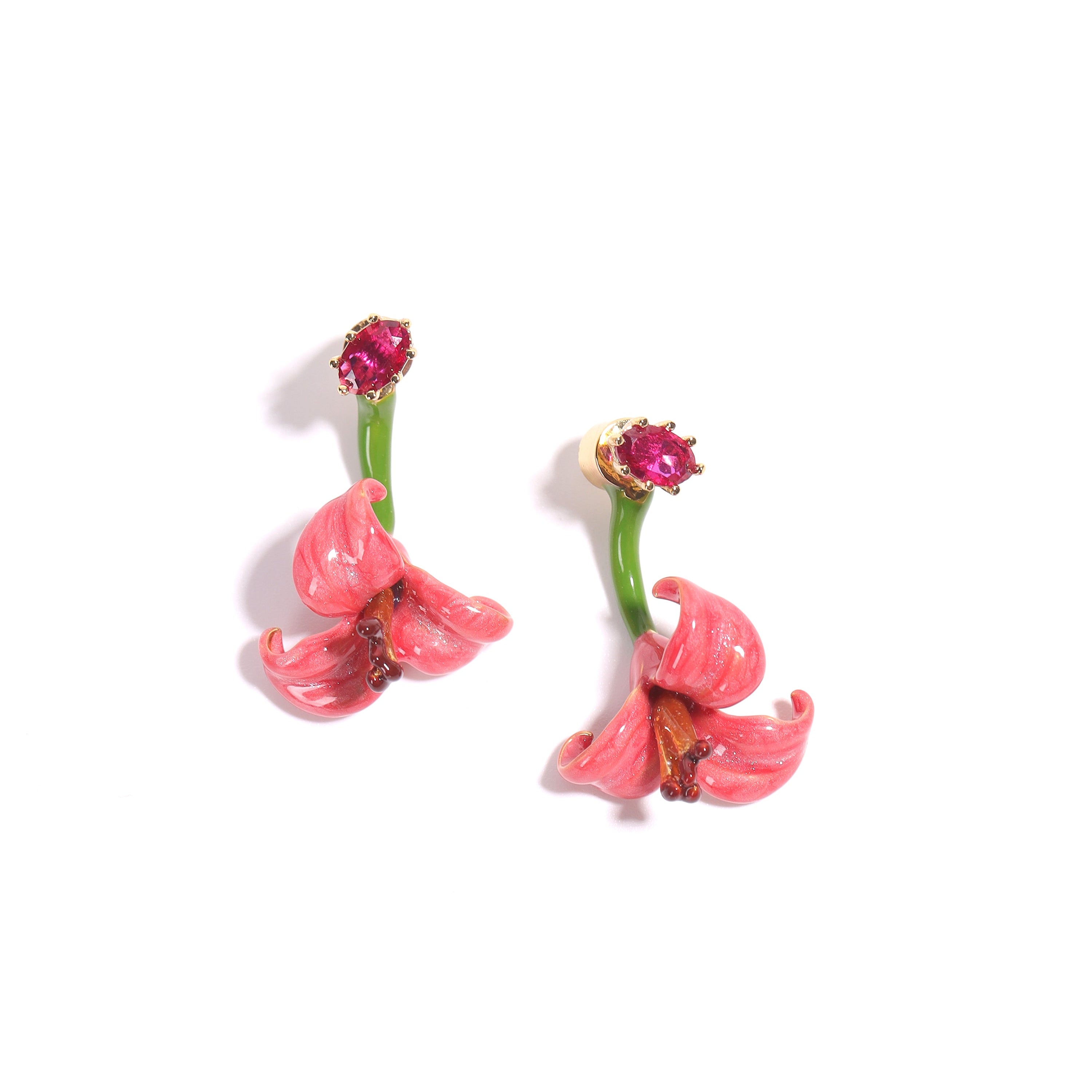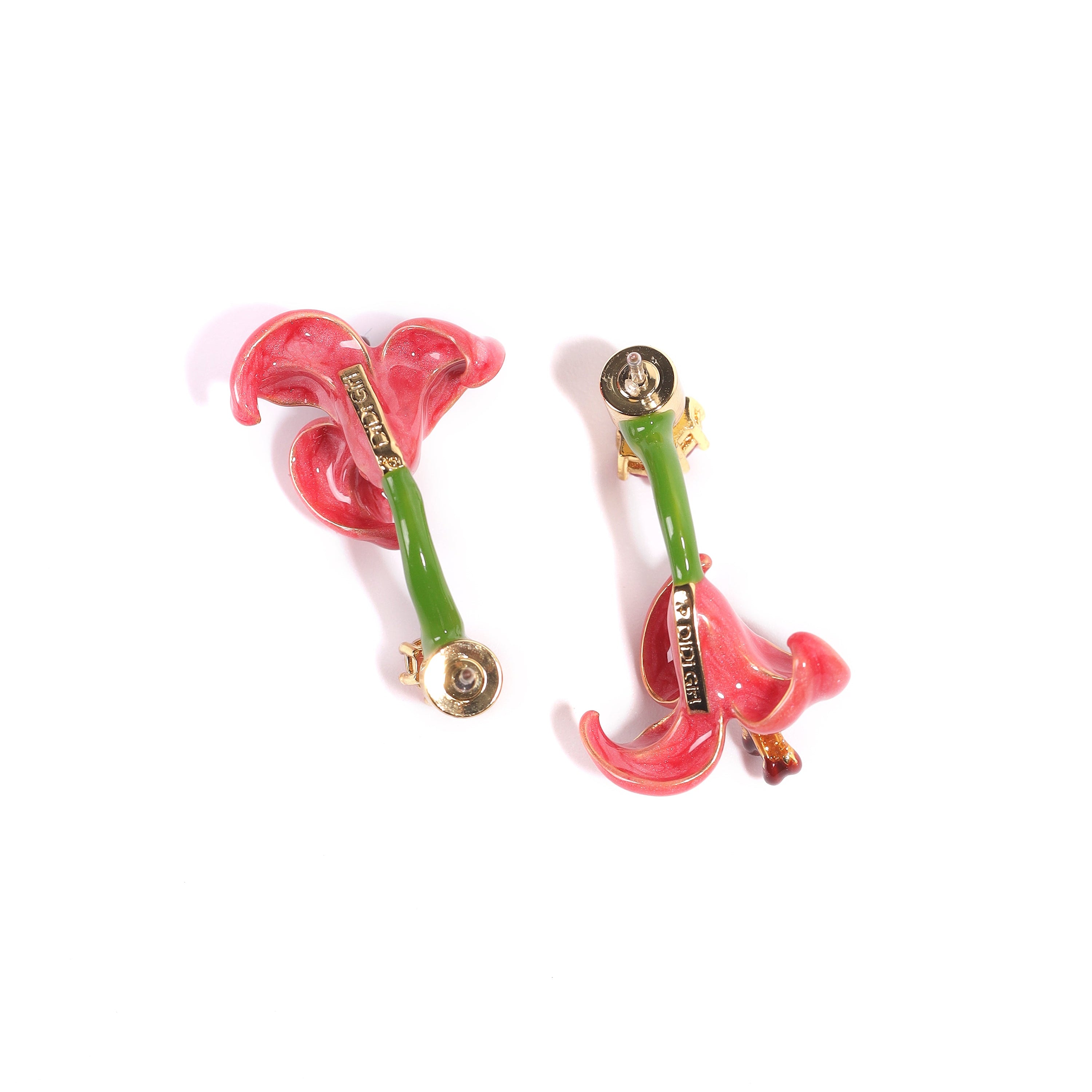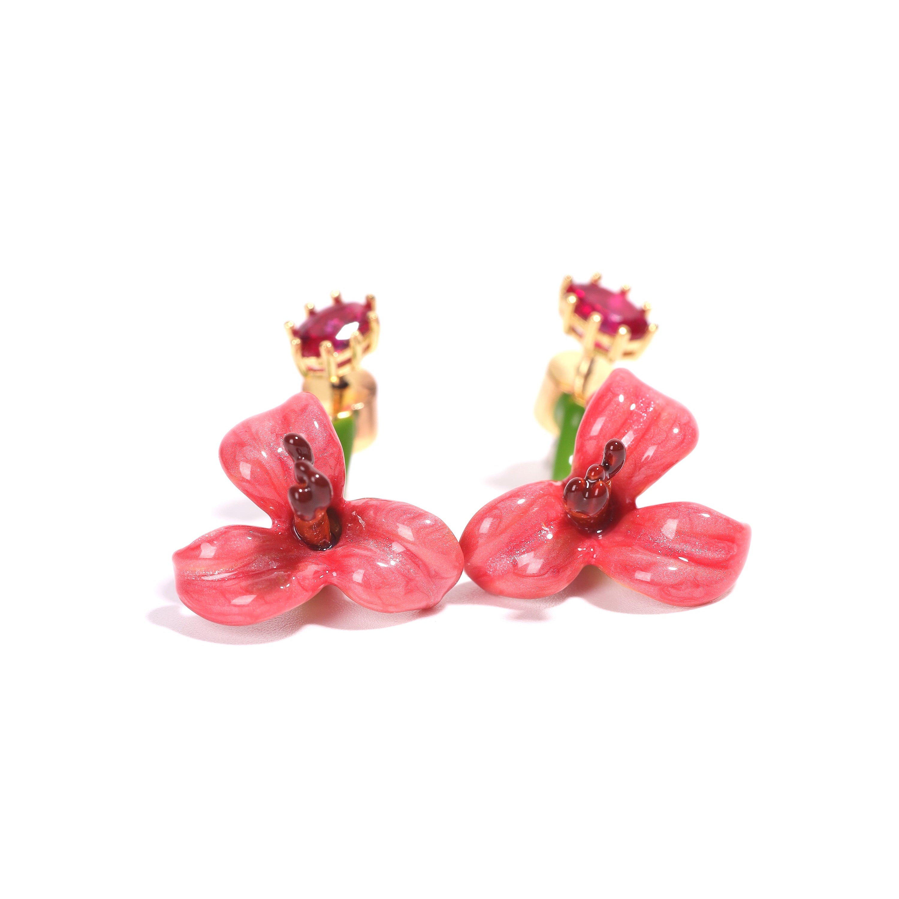 Pink-Green Variant: Crafted from copper with enamel coating, embellished with imported Austrian rhinestones, and finished with an 18k gold IP plating.
