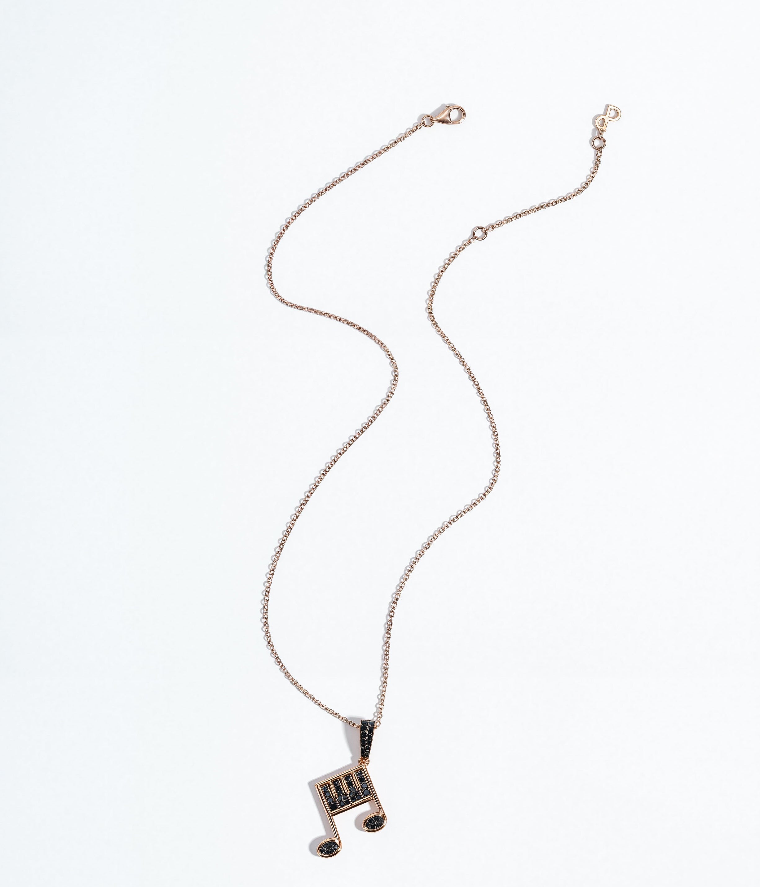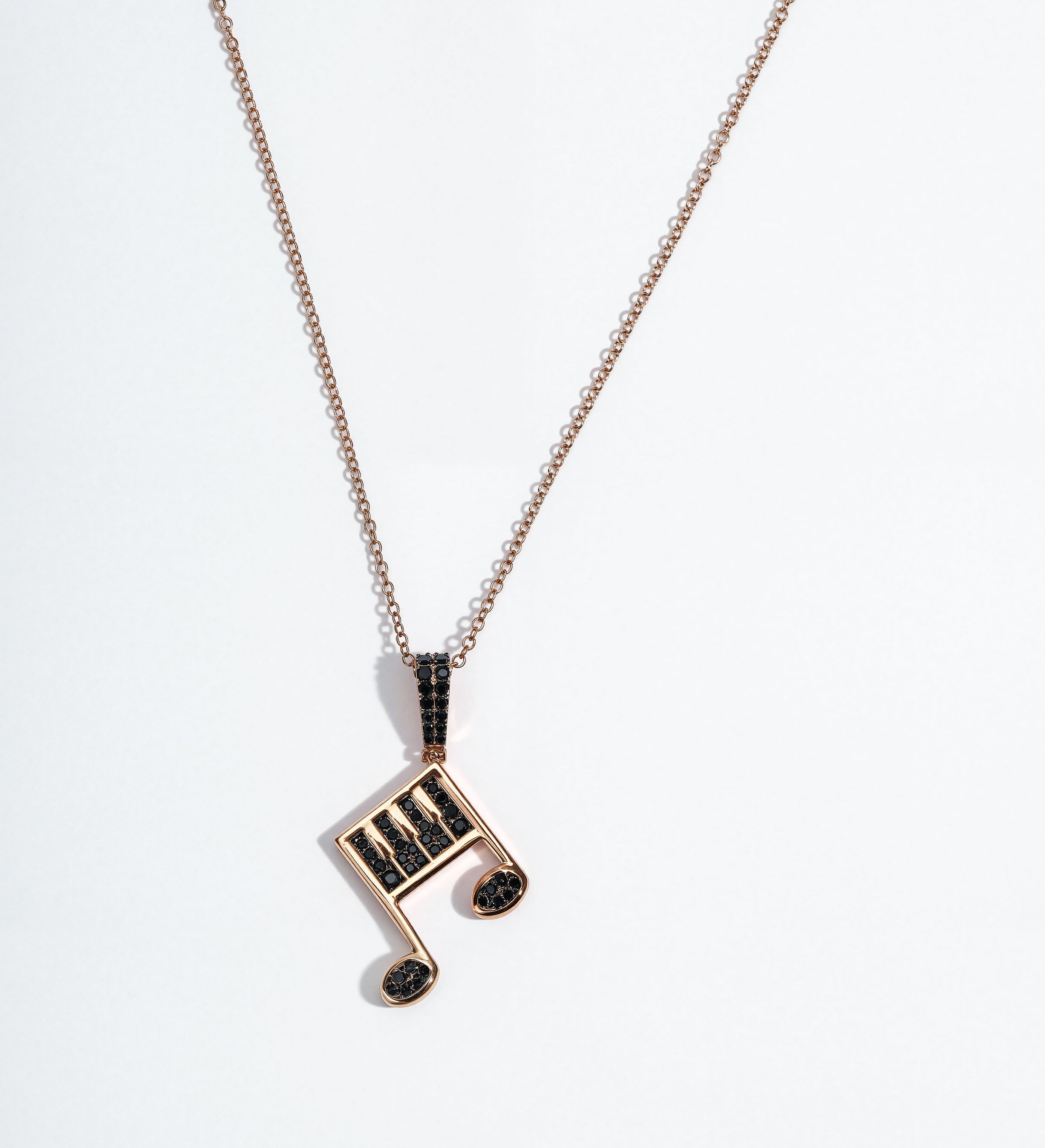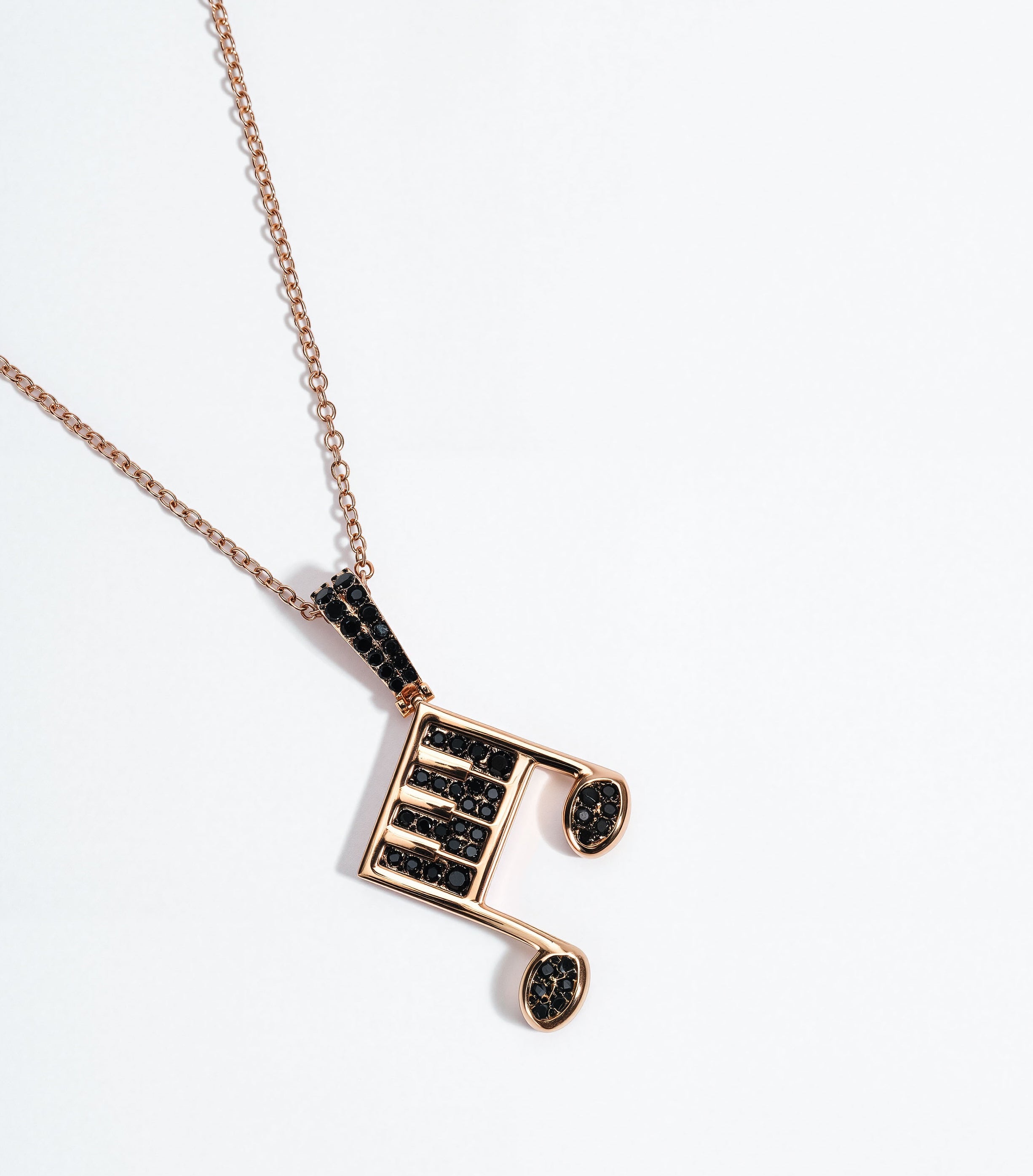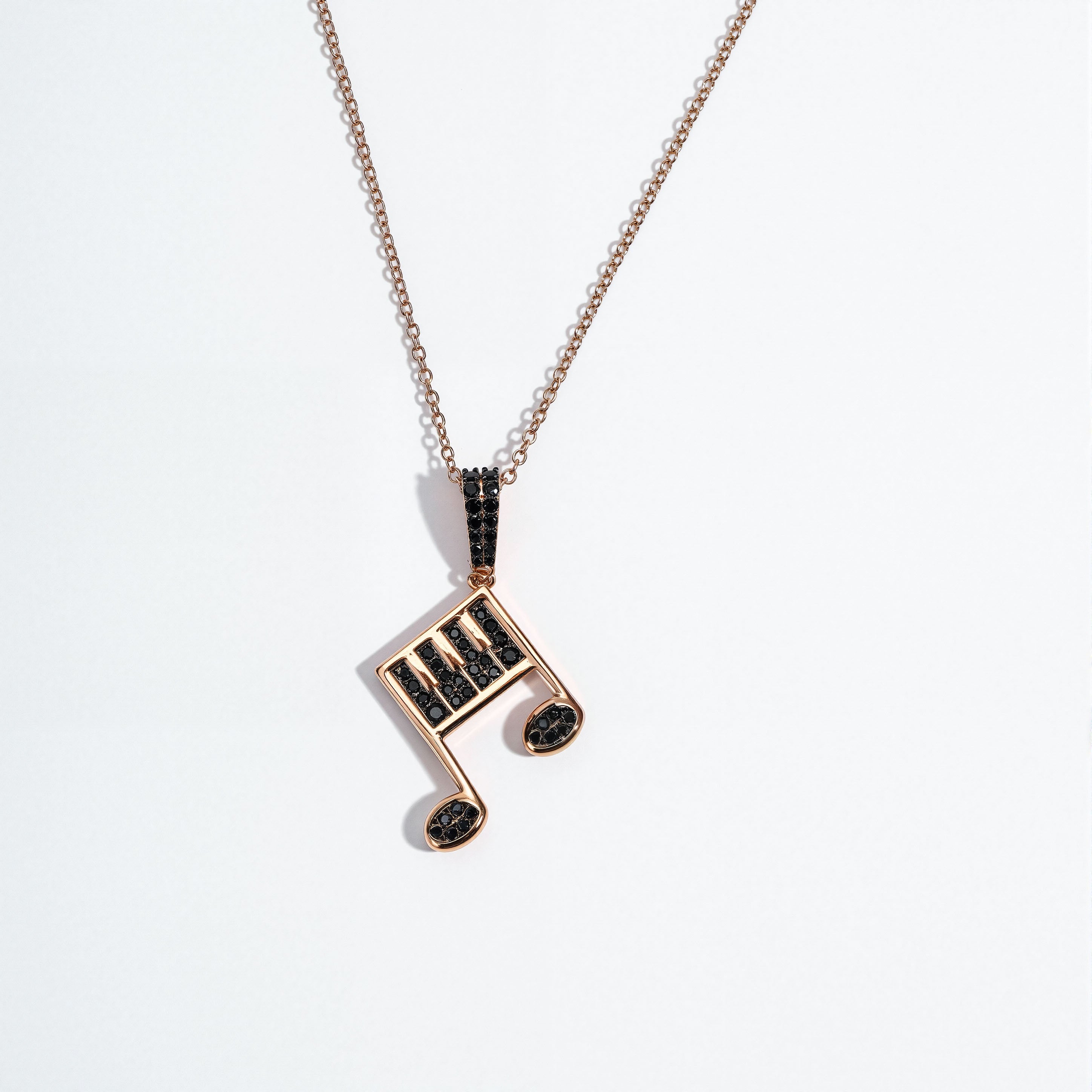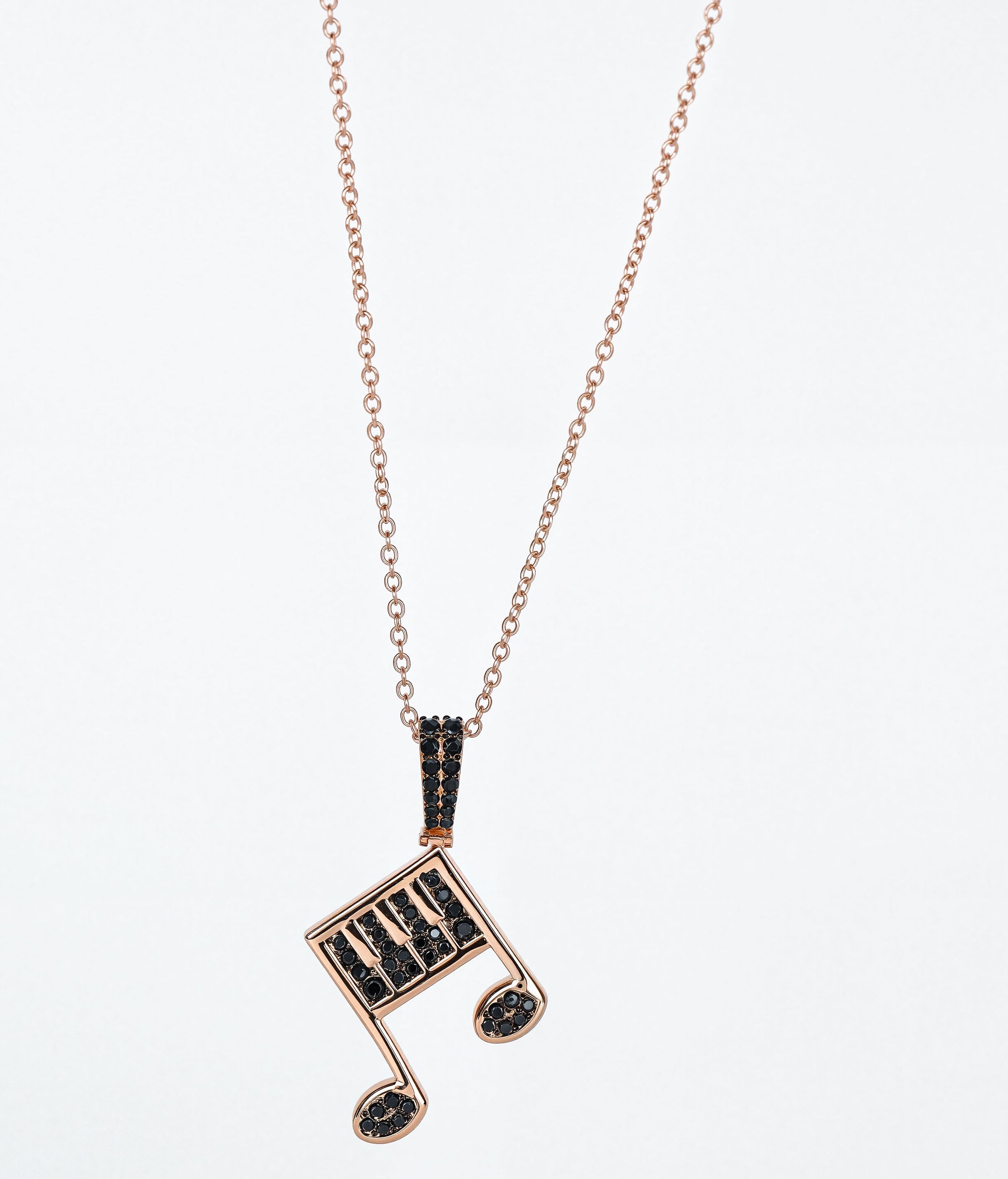 Celebrate the beauty of music with our Rose Gold Melody Note Necklace. This stunning piece features a delicately crafted musical note pendant, symbolizing creativity and harmony. Made from high-quality rose gold plating, it exudes elegance and sophistication. The pendant is adorned with sparkling black zircon stones, adding a touch of glamour and allure. Perfect for music enthusiasts or as a thoughtful gift, this necklace is a timeless accessory that beautifully captures the essence of melody. Wear it alone or layer it with other necklaces for a chic and trendy look.