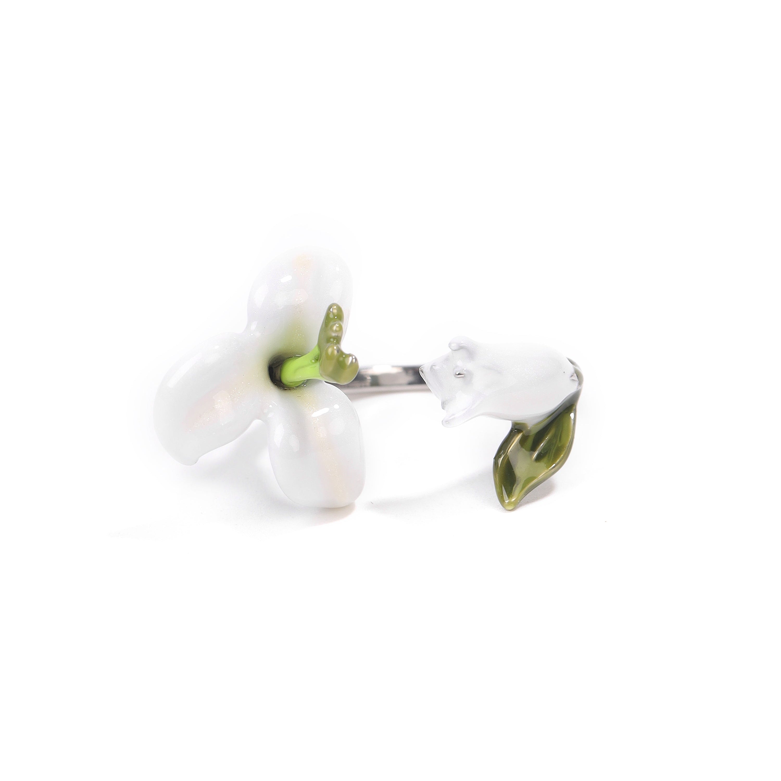 Inspired by the beauty of nature, featuring exquisite earrings and a stunning ring. This charming collection comes in two delightful color options: a vibrant Pink-Green and a classic White-Green.