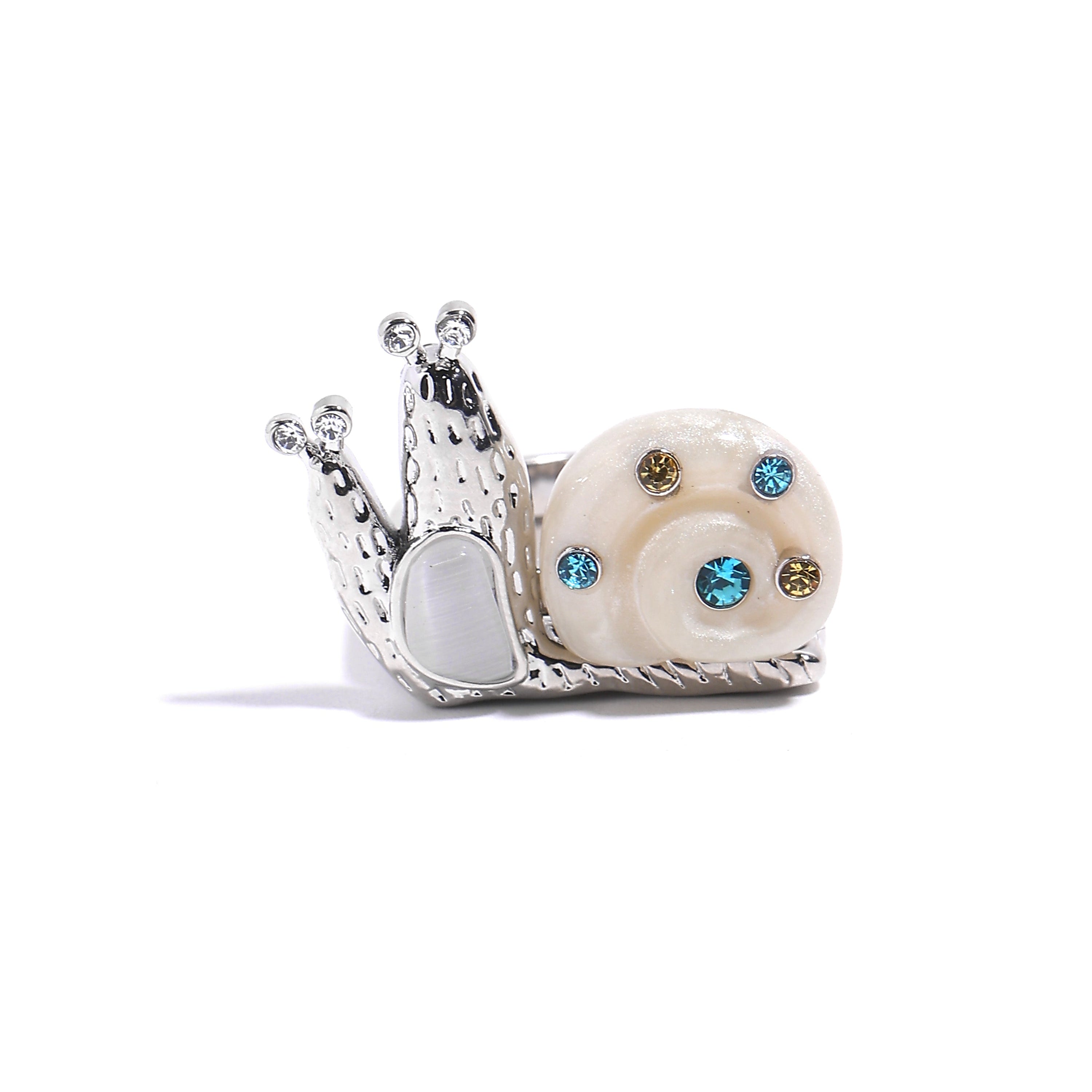 The unique snail shell and body can be freely combined, allowing for personalized creativity. Designed as a parent-child duo, this set is available in children's sizes 4, 5, and 6, and adult sizes 7, 8, and 9, celebrating the bond between generations. With a luxurious IP 18K gold plating, this whimsical ring is a fun and stylish addition to any jewelry collection.