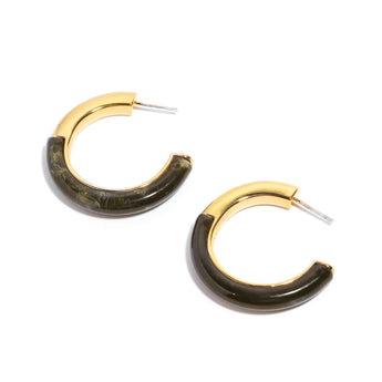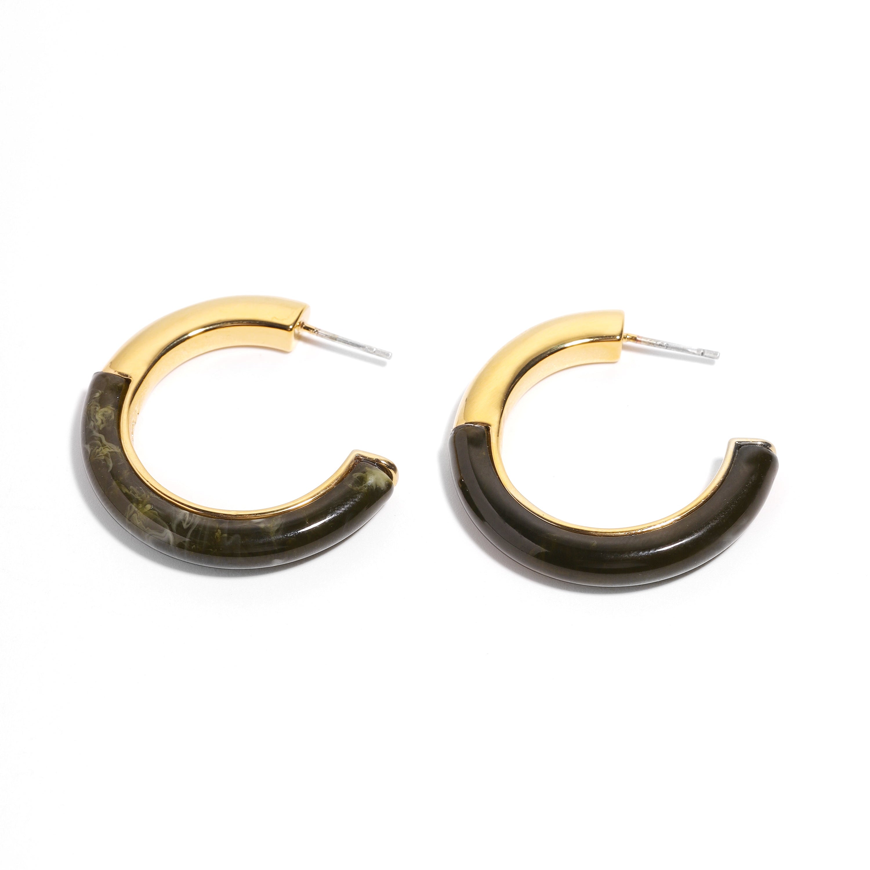 Chic Two-Tone Resin and Gold-Plated Hoop Earrings