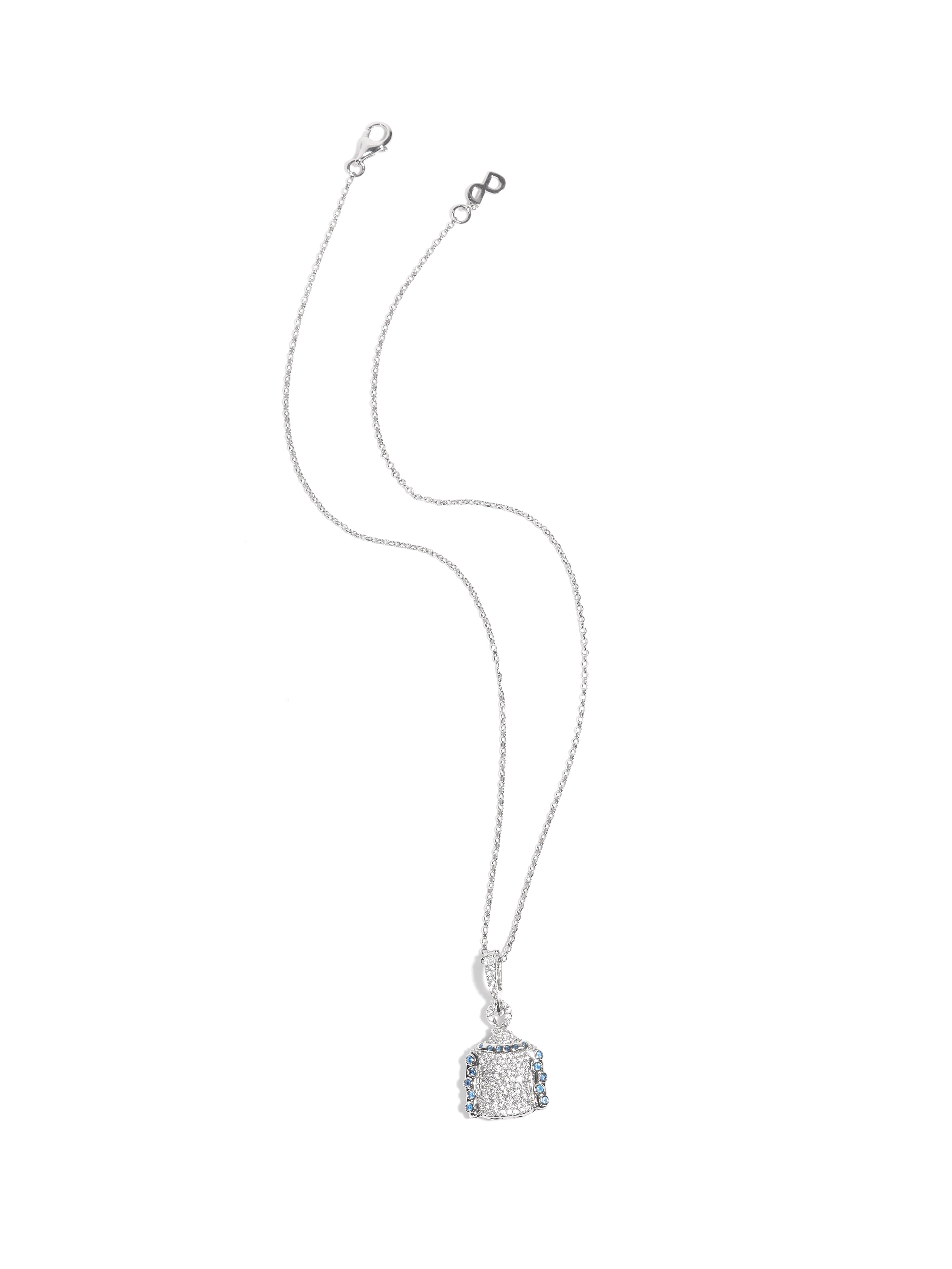 Inspired by whimsical children's artwork, this delightful jewelry set features a unique clothing-shaped pendant and earrings, crafted from high-quality copper and adorned with stunning zircon stones. The pieces are beautifully coated in real white gold, ensuring a luxurious finish.