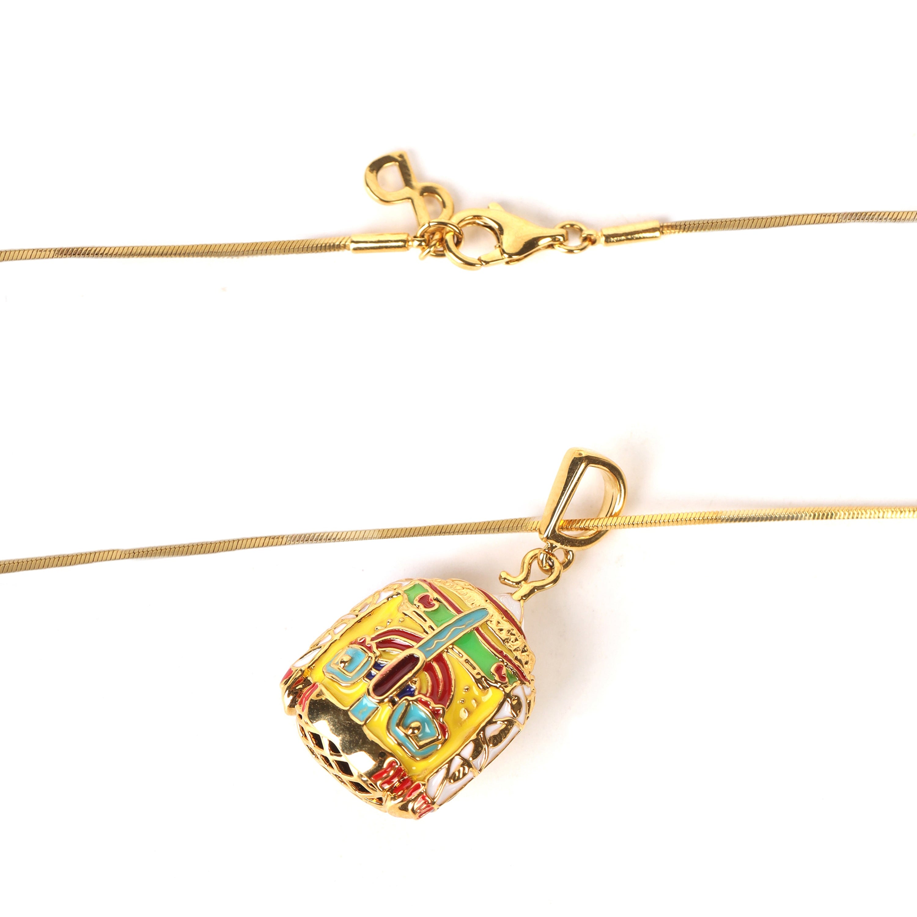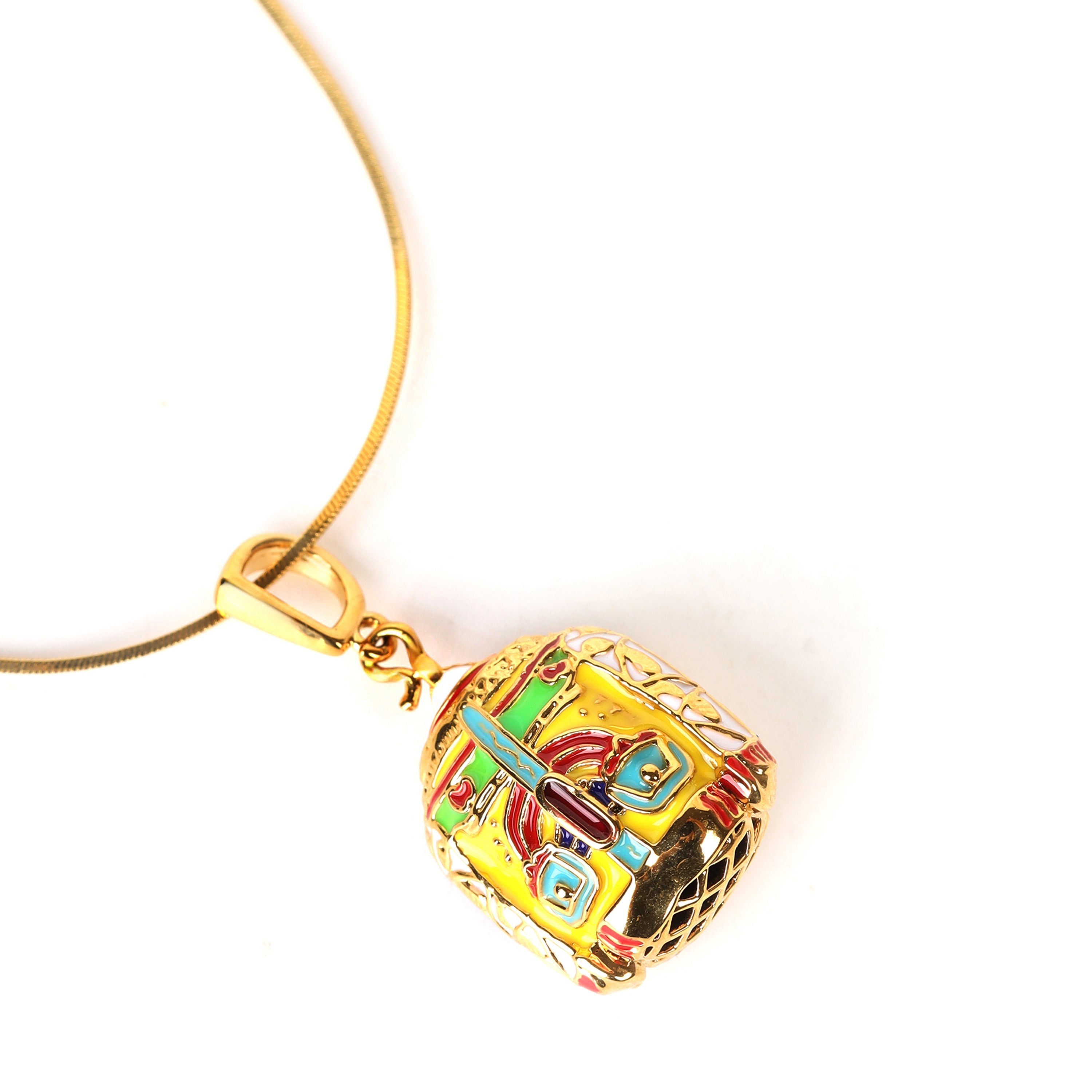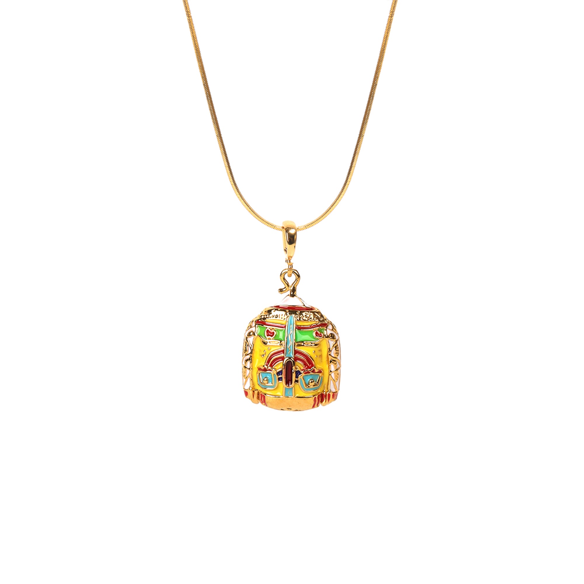 Inspired by imaginative children's artwork, this delightful jewelry set features a whimsical clothing-shaped pendant and matching earrings. Crafted from high-quality copper and adorned with vibrant enamel colors, this set is elegantly coated in IP 18K gold for a luxurious finish.