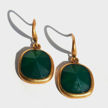 Elegant Green Stone and Gold-Plated Earrings
