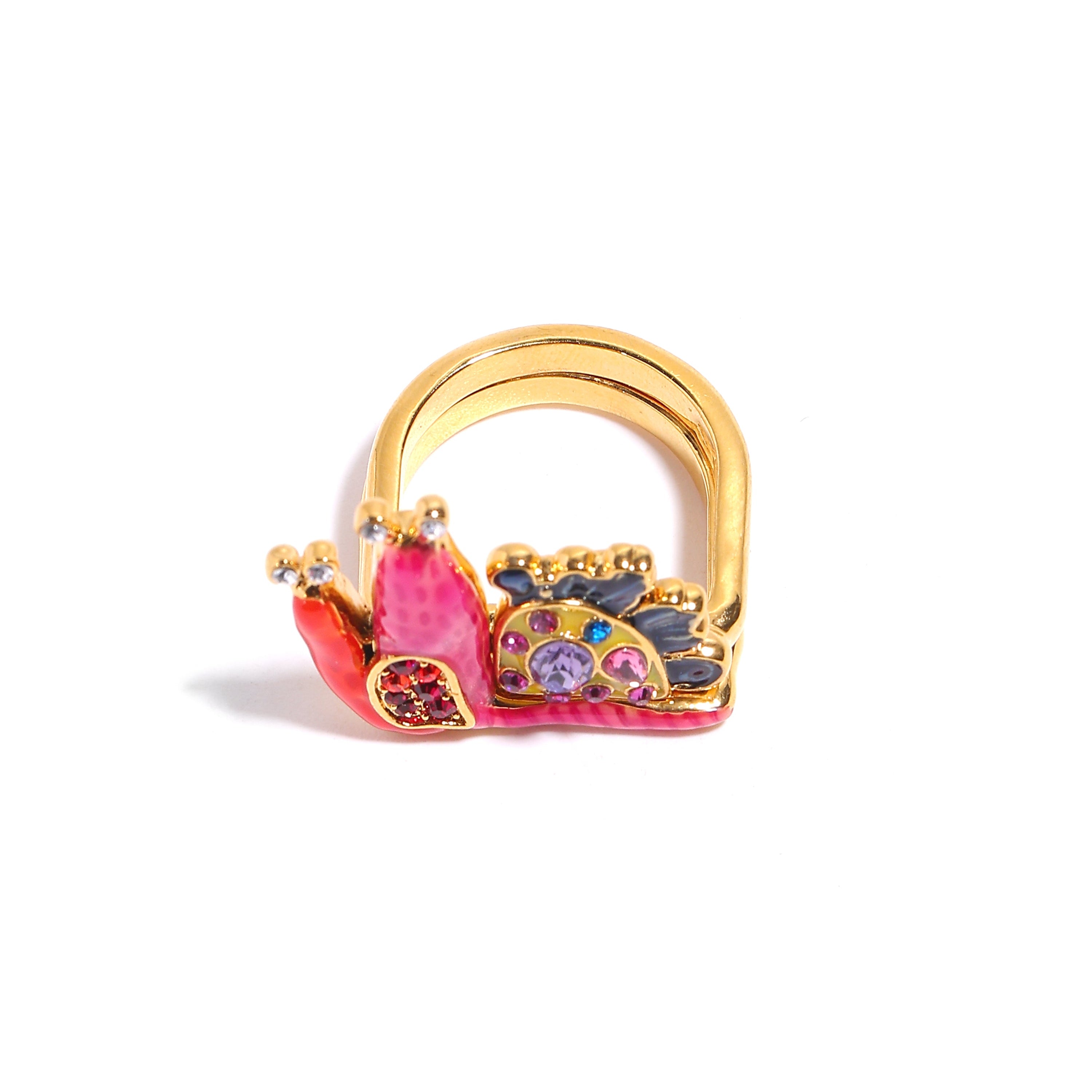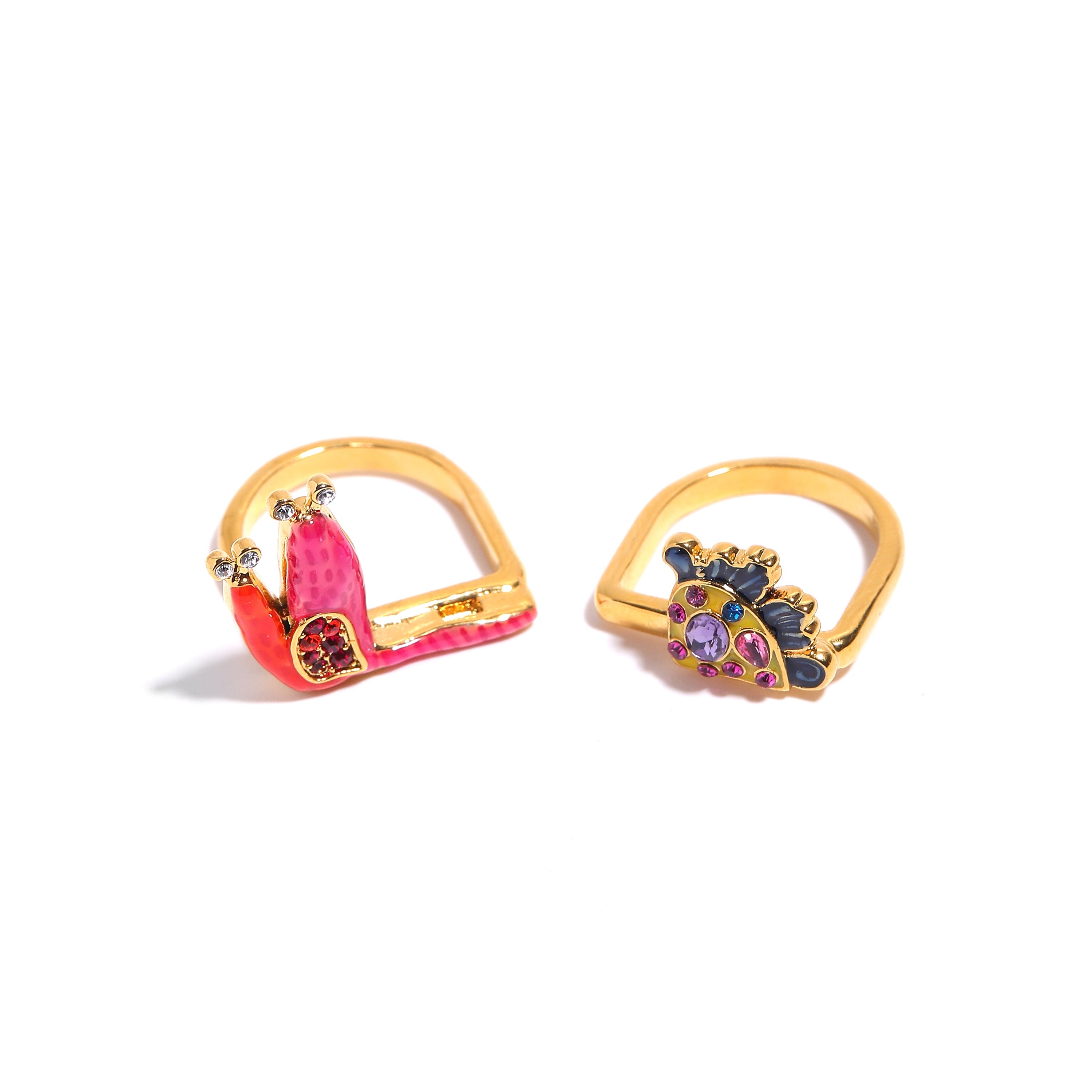 The unique snail shell and body can be freely combined, allowing for personalized creativity. Designed as a parent-child duo, this set is available in children's sizes 4, 5, and 6, and adult sizes 7, 8, and 9, celebrating the bond between generations. With a luxurious IP 18K gold plating, this whimsical ring is a fun and stylish addition to any jewelry collection.