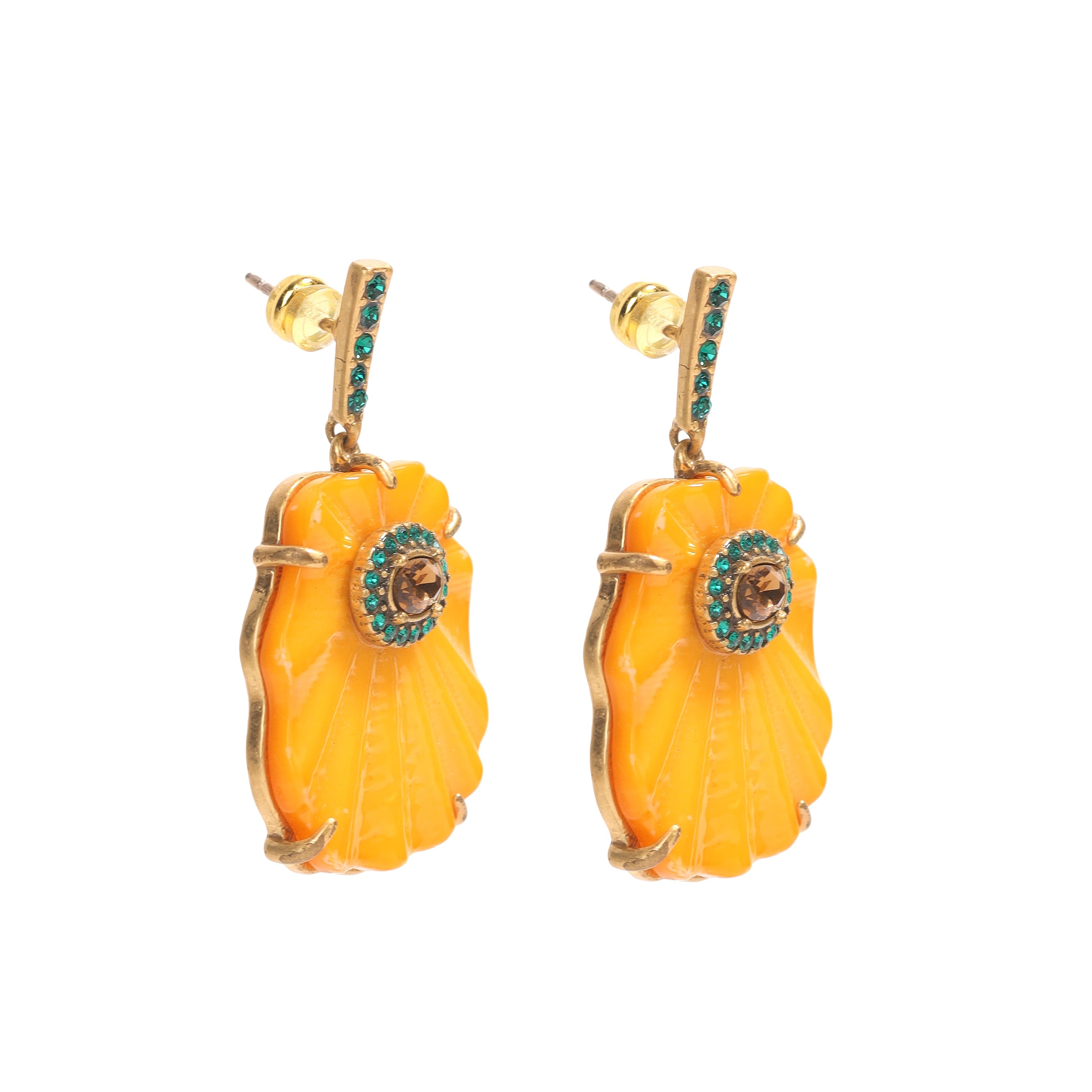 Vibrant Orange Shell and Crystal Earrings